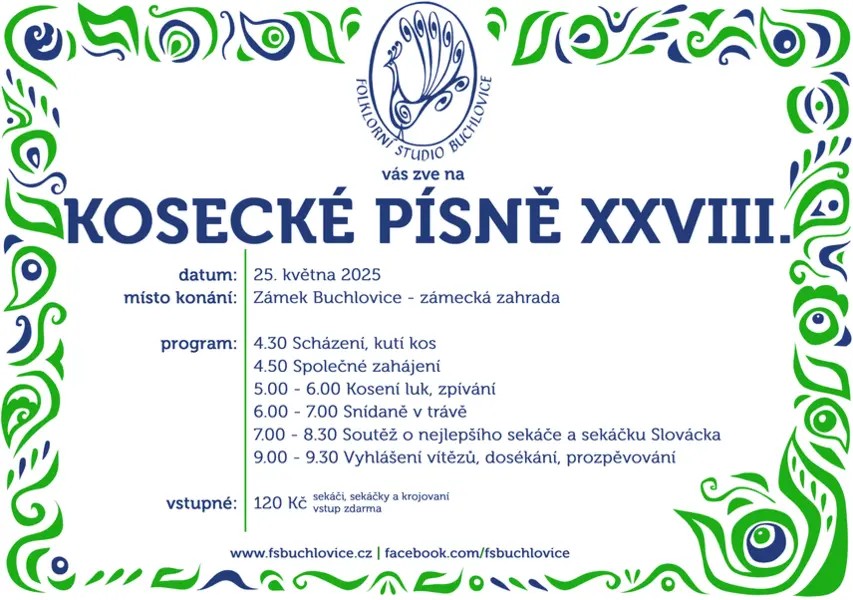 Folklórní studio Buchlovice a správa Zámku Buchlovice Vás srdečně zvou na již 28. ročník Koseckých písní.