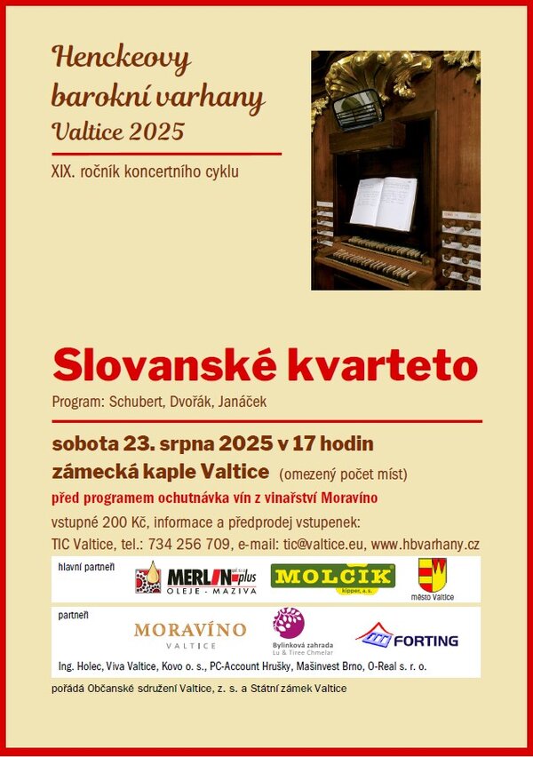 Koncert se koná v sobotu 23. srpna 2025 od 17:00 v kapli zámku Valtice.