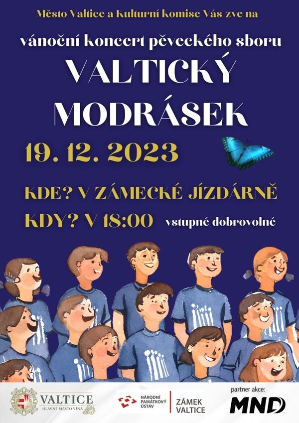 Vánoční koncert dětského pěveckého sboru VALTICKÝ MODRÁSEK se opět uskuteční v Zimní jízdárně, a to v úterý 19. prosince od 18:00. Vstupné dobrovolné.