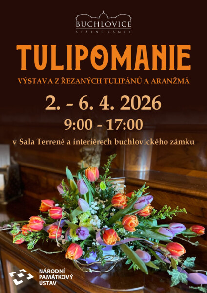 Ve dnech 2. 4. – 6. 4. 2026 se na zámku v Buchlovicích uskuteční tradiční výstava řezaných tulipánů s názvem Tulipomanie. V rámci prohlídky zámeckých interiérů budou k vidění květinová aranžmá a v Sala terreně si návštěvníci mohou prohlédnout výstavu řezaných tulipánů vždy od 9.00 do 17.00 hodin.